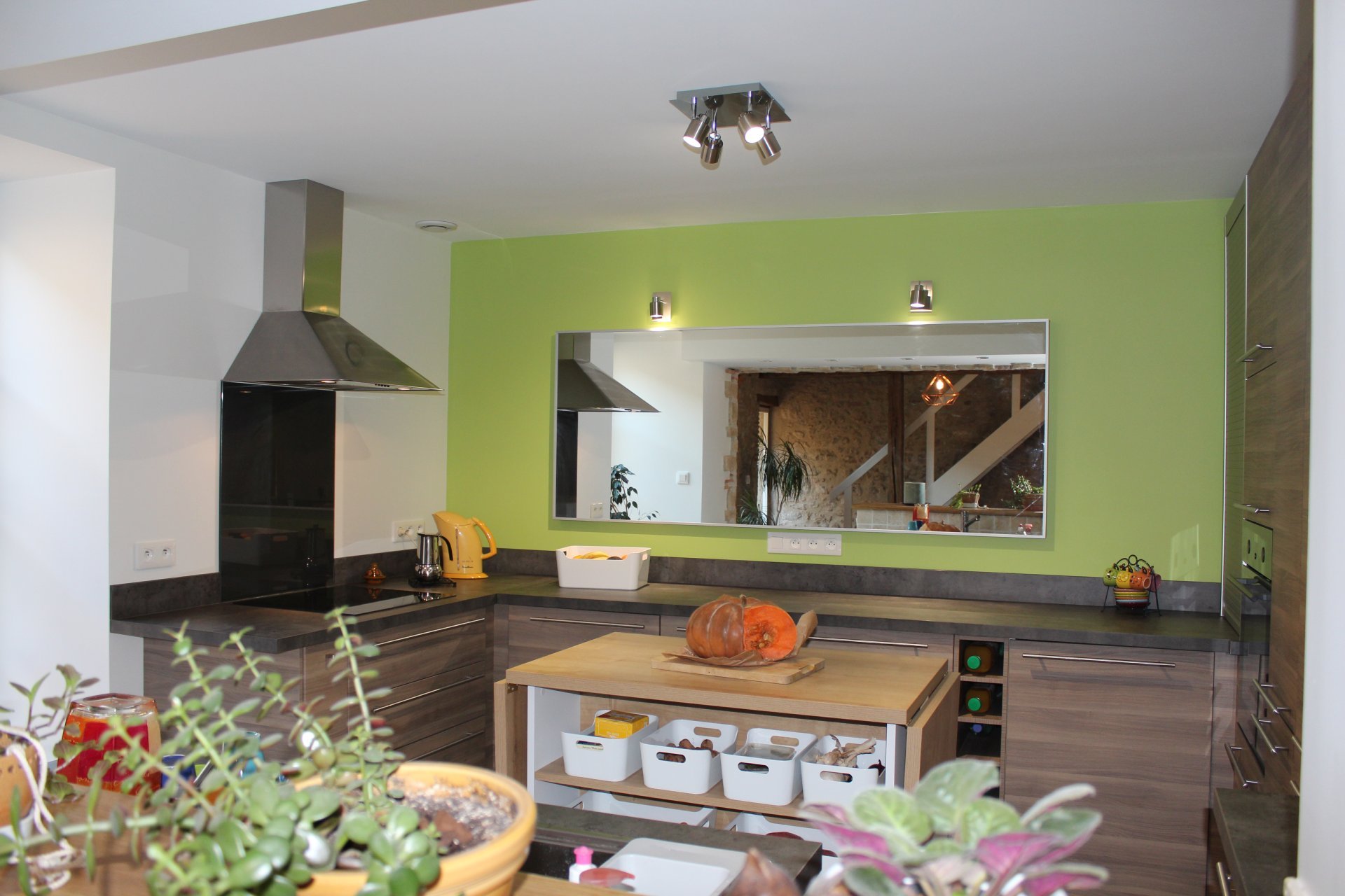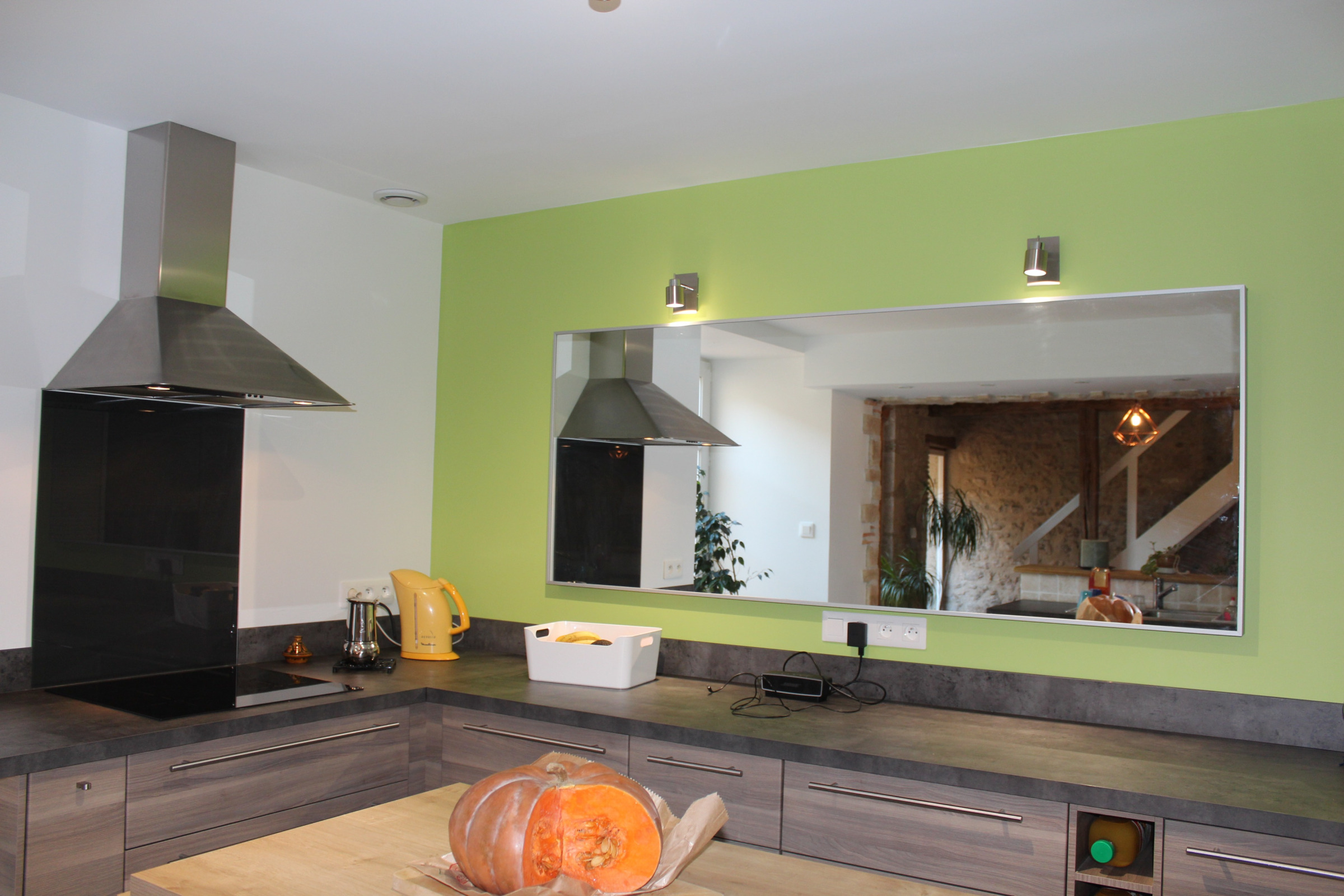 Après une cuisine moderne mise en valeur par le cadre en pierres