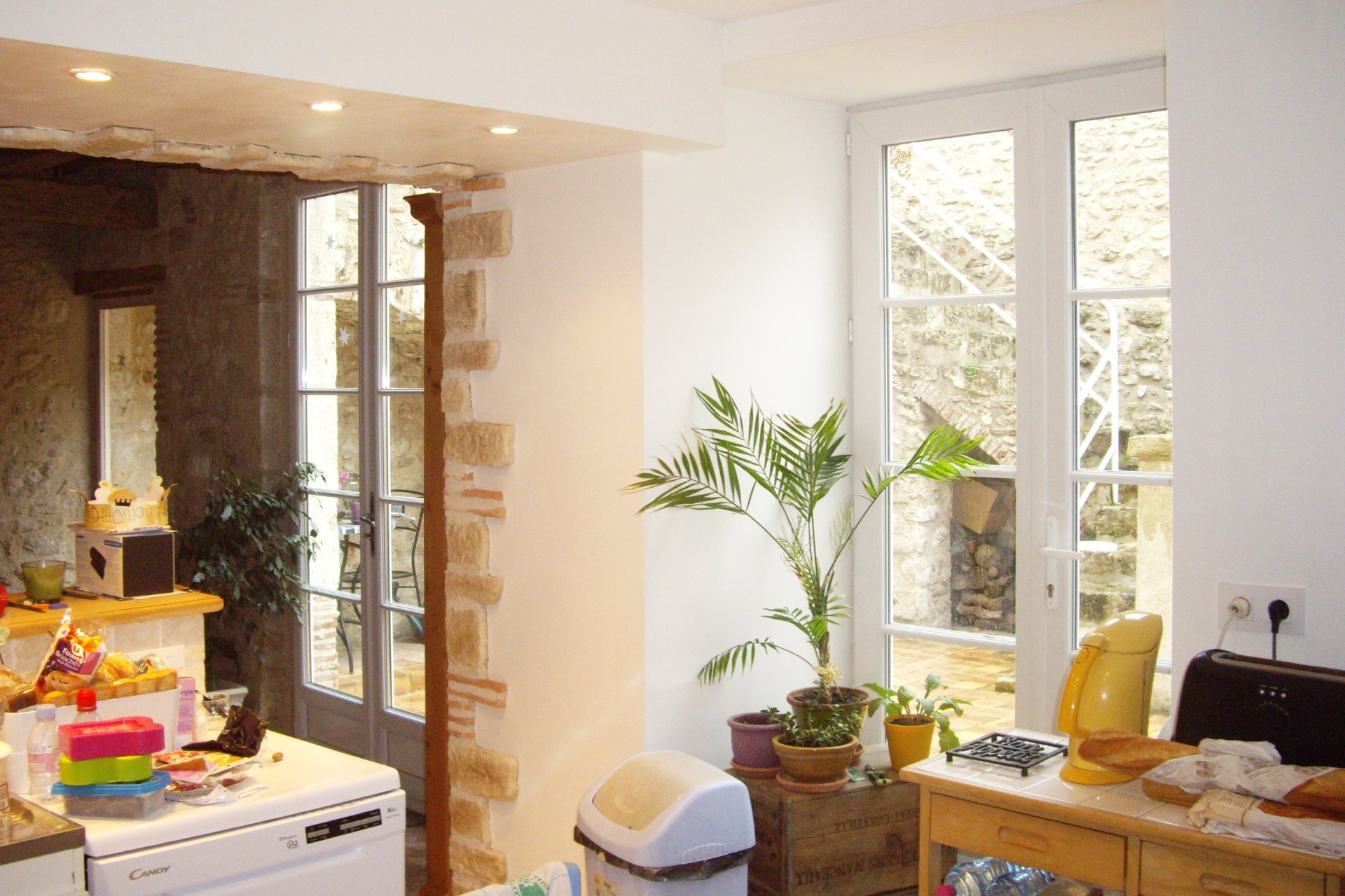 Agencement complet de la cuisine soulignée de vieilles pierres