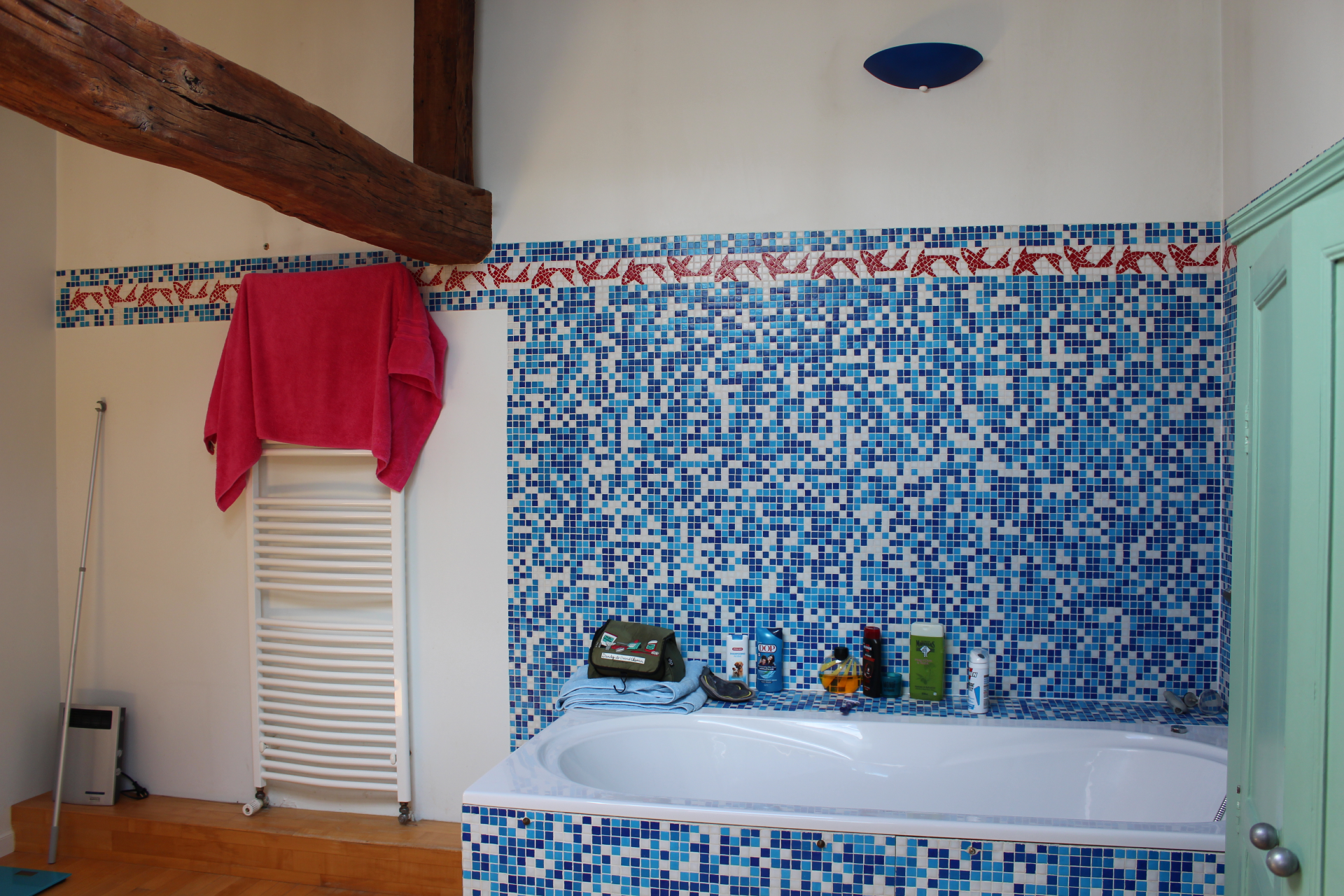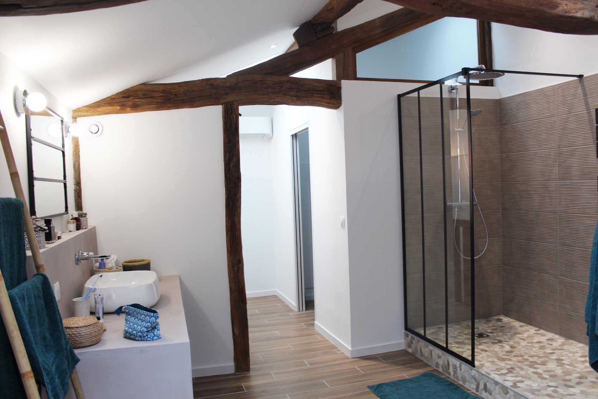 Création d'une douche XXL à côté de la baignoire balnéo conservée