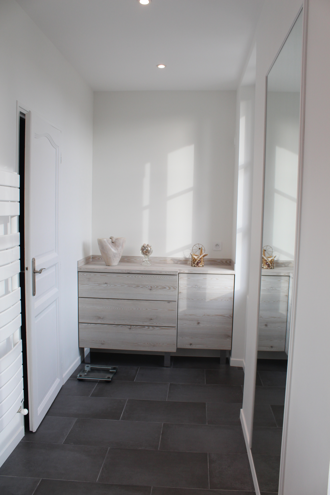 L'ancienne cabine de douche supprimée pour des rangements sur mesure